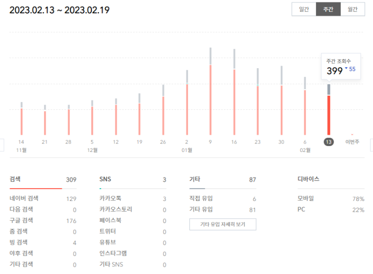 위의 글은 한개의 글에대한 주간통계인데 보시면 다음 저품질임에도 네이버와 구글에서 높은 점수를 받아 지속적인 유입이 있는 글입니다. 본 글이 글을 잘썻다 이런 느낌이 아니라 사실 잘 구조화하여 작성한 글이라서 저러한 결과가 나오지 않았나 싶습니다.