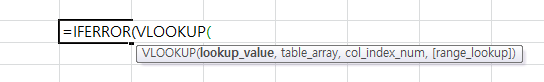 =ife [tab키] vl [tab키] 를 누르면 순간적으로 iferror과 함께 vlookup 함수를 사용할 수 있습니다.