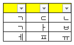 전체적으로 보면 'ㄱ' 이란 값이 'ㄷ' 과 'ㅏ' 부분을 품고 있기 때문에 'ㄱ'값이 중복으로 사용된 걸 확인 하실 수 있습니다. 데이터가 많더라도 칸 크기가 다르기 때문에 휠 내리며 확인하면 금방 중복된 값을 찾을 수 있습니다.